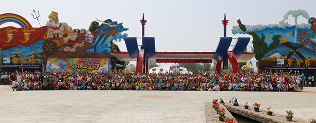 經(jīng)銷(xiāo)商們?cè)跇?lè)島海洋公園門(mén)前留影