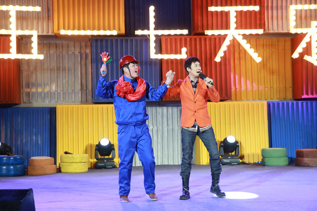 本次《五一七天樂》節(jié)目的主題是“五一七天樂,勞動(dòng)更快樂”。節(jié)目在獨(dú)具勞動(dòng)特色的開場舞《最炫民族風(fēng)》中拉開演出序幕,于文華、管彤推著小推車出場,車上的大箱子引起了觀眾們的好奇。正當(dāng)觀眾遺憾和猜測禮物是什么的時(shí)候,老畢出奇意外地從箱子里出來,這份始料未及的“大禮”頓時(shí)引起了現(xiàn)場觀眾一陣歡呼。隨后其他嘉賓分別騎玩具小車登臺(tái),《五一七天樂》節(jié)目開始。節(jié)目以比賽的形式進(jìn)行,眾位嘉賓分成“紅薯”和“拔絲”倆隊(duì),現(xiàn)場比拼才藝。
