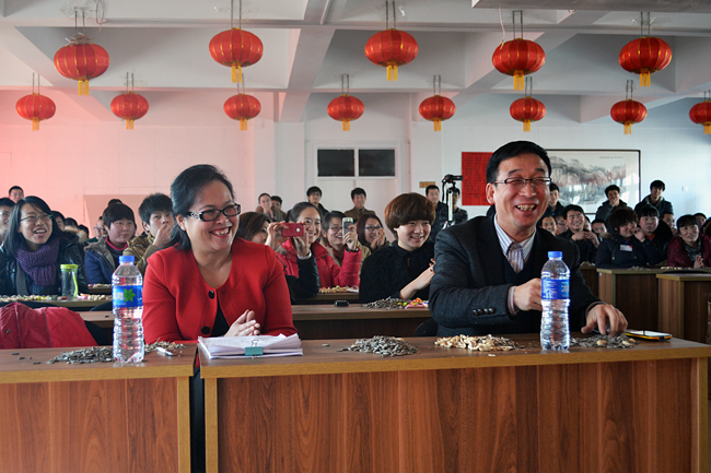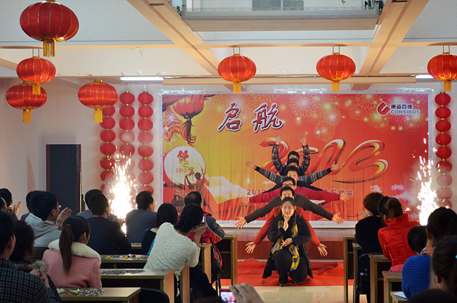 聯(lián)歡會(huì)在歌曲聯(lián)唱《歡天喜地拜大年》的歡快節(jié)奏中拉開(kāi)帷幕,公司各部門紛紛上臺(tái),《新年好》、《恭喜發(fā)財(cái)》、《正月里來(lái)正月正》、《小拜年》、《恭喜恭喜你》等經(jīng)典拜年歌曲再現(xiàn),別出心裁的出場(chǎng)方式讓人目不暇接。由市場(chǎng)部北京區(qū)表演的舞蹈《美觀不美觀》將演出推向了高潮,場(chǎng)下掌聲不斷,歡快、喜慶、熱烈的氣氛溢滿會(huì)場(chǎng),整個(gè)會(huì)場(chǎng)暖意融融,變成了歡樂(lè)的海洋。
