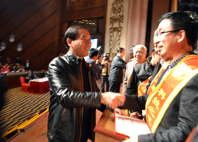 頒獎(jiǎng)嘉賓為董事長李銀祥頒發(fā)證書并祝賀