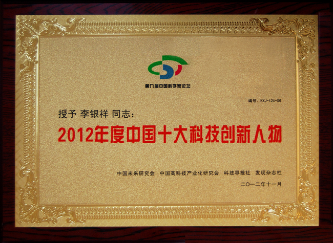 董事長李銀祥榮獲“2012年度中國十大科技創(chuàng)新人物”獎(jiǎng)