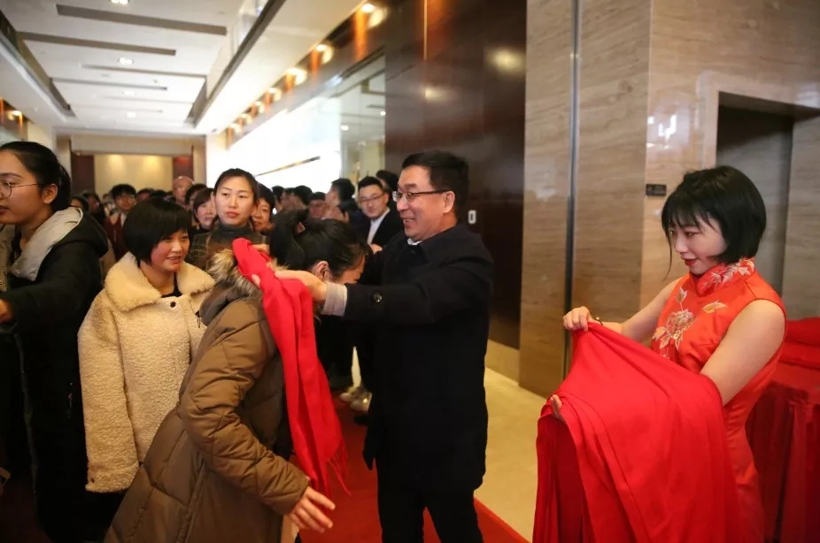 李總為小伙伴戴上紅圍巾