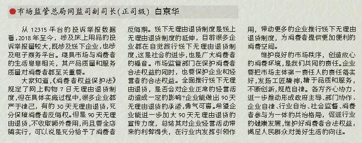 大家知道,《消費者權(quán)益保護法》規(guī)定了網(wǎng)上購物7日無理由退貨制度,但在具體實施過程中,很多企業(yè)都嚴于律己,有的30天無理由退貨,充分保障消費者反悔權(quán)。但是90天無理由退貨,不收取額外費用,而且要全店鋪實行,可以說是充分給予了消費者反悔期。線下無理由退貨制度是線上無理由退貨制度的延伸,目前很多企業(yè)都在自覺踐行線下無理由退貨制度,這是社會的進步,也是廣大消費者的福音。市場監(jiān)管部門在保護消費者合法權(quán)益的同時,也要保護企業(yè)和經(jīng)營者的合法權(quán)益。全面推行線下無理由退貨,是否會對企業(yè)正常的經(jīng)營活動造成一定的影響?企業(yè)能做出90天無理由退貨的承諾,勇氣可嘉。希望企業(yè)能進一步加大90天無理由退貨的宣傳力度,總結(jié)其對企業(yè)經(jīng)營活動帶來的利弊得失,在行業(yè)內(nèi)發(fā)揮引領(lǐng)作用,帶動更多的企業(yè)推行線下無理由退貨制度,為消費者提供更加便利的消費空間。