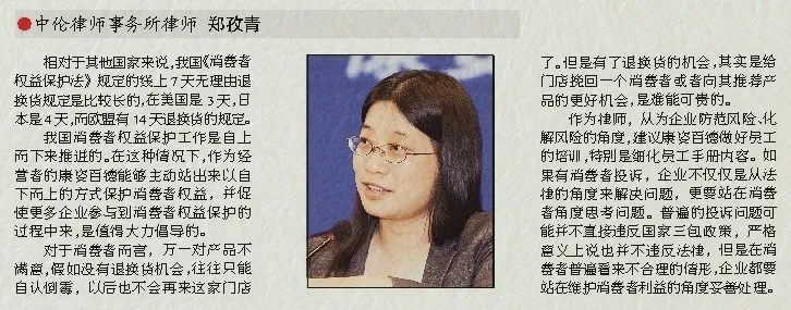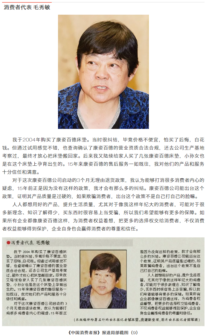 我國消費者權(quán)益保護工作是自上而下來推進的。在這種情況下,作為經(jīng)營者的康姿百德能夠主動站出來以自下而上的方式保護消費者權(quán)益,并促使更多企業(yè)參與到消費者權(quán)益保護的過程中來,是值得大力倡導的。