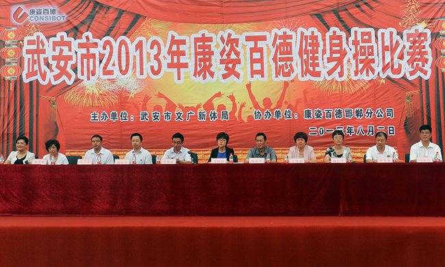 8月2日上午,邯鄲武安市武安廣場五彩斑斕、人聲鼎沸。隨著熟悉的節(jié)拍,一支支代表隊舞動著優(yōu)美的舞姿,精神飽滿,動作整齊,數(shù)千人徜徉在一片舞的海洋之中,盡情享受康姿百德健身操帶給人們的健康和快樂。 為迎接第五個“全民健身日”的到來,引導廣大群眾積極參加體育健身活動,武安市文廣新體局、康姿百德邯鄲分公司聯(lián)合在武安廣場舉行了康姿百德第二套健身操比賽。來自武安市各健身站點的24支代表隊共計658人參加了比賽,整個比賽精彩紛呈,高潮迭起,產(chǎn)生了良好的社會反響??底税俚鹿径麻L、總經(jīng)理李銀祥在百忙之中出席比賽并致辭。 李銀祥在致辭中首先對武安市各級領導、社會各界給予康姿百德公司的支持和康姿百德健身操的厚愛表示感謝!李銀祥說,康姿百德公司是一家研發(fā)生產(chǎn)磁性健康寢具的高科技企業(yè),公司在高度重視產(chǎn)品質(zhì)量的同時,積極倡導“健康睡眠、適量運動、合理營養(yǎng)”三管齊下的“立體健康”理念,研究創(chuàng)編了康姿百德健身操,并通過不斷地完善改進,于今年3月份推出了康姿百德第二套健身操,受到了全國各地廣大健身愛好者的喜愛。目前,康姿百德健身操在全國已有4000多個健身場所、參與人數(shù)300多萬,并被許多機關單位和中小學、幼兒園作為工(課)間操,這既是對我們的激勵,也是對我們的鞭策。我們將繼續(xù)把康姿百德的各項工作做得更扎實、更出色。