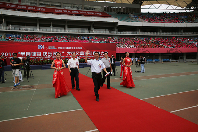 為全面展示康姿百德2014“全民健身快樂同行”大型公益活動的成果,進一步把全民健身活動引向深入,來自全國各地的257個代表隊、11000多人進行了氣勢恢宏的康姿百德健身操展演。伴隨著耳熟能詳?shù)男?,各代表隊依次入場,一面面隊旗迎風(fēng)高揚,一排排隊伍整齊劃一,節(jié)奏明快的旋律和優(yōu)美舒暢的動作有機融合,彰顯出了“我運動、我健康、我快樂”的健身風(fēng)采和大家對幸福生活的追求,把人們帶入了一個五彩繽紛的歌舞世界。晚上7點30分,經(jīng)過6個多小時的展演,活動在燈火閃爍的夜色中緩緩落幕。