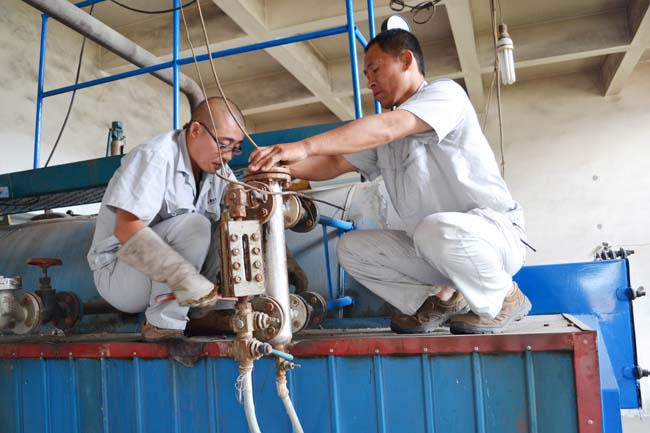 馮國(guó)成在給工友講解維修注意事項(xiàng) 在本職崗位上,他緊密聯(lián)系工作實(shí)際,堅(jiān)持刻苦鉆研業(yè)務(wù),攻克了生產(chǎn)中存在的許多技術(shù)難題。充分發(fā)揮了勞模的骨干和帶頭作用,支持和幫助其他工友提升業(yè)務(wù)素質(zhì)。瞧,他身邊這位全神貫注的年輕人,沒(méi)準(zhǔn)兒就是下屆的勞動(dòng)模范呢!