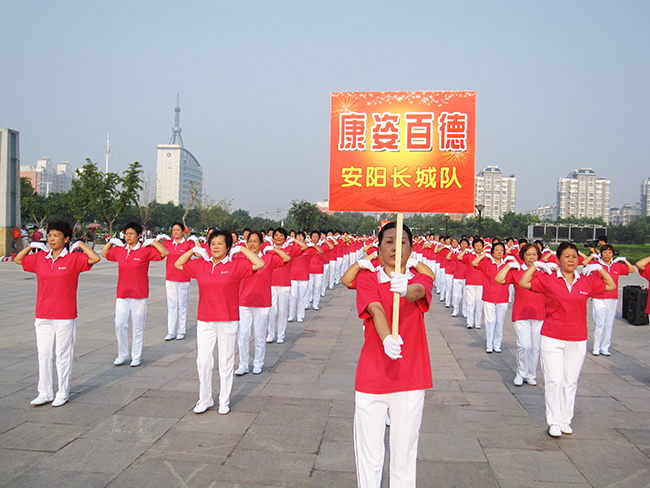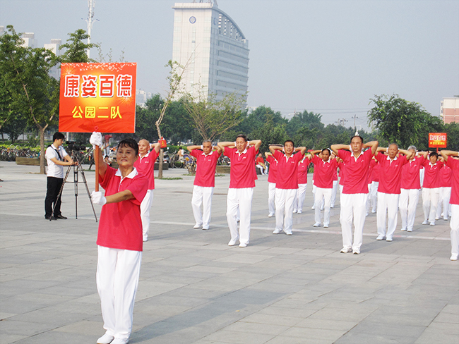 積極備戰(zhàn)9月份在秦皇島市舉行的2013“全民健身·快樂同行”大型公益活動(dòng)總結(jié)表彰大會(huì),進(jìn)一步提高廣大群眾的全民健身意識、推廣普及全民健身活動(dòng),康姿百德健身操展演比賽活動(dòng)近日相繼在安陽市舉行,深受人們的喜愛。 8月15日上午,康姿百德第二套健身操大賽在安陽市東區(qū)圖書館、博物館兩個(gè)廣場舉行,來自各個(gè)健身站點(diǎn)的520名康姿百德健身操隊(duì)員,在烈日的炙烤下,雖然個(gè)個(gè)汗流浹背,但卻精神抖擻、興奮不已。伴隨著一曲曲節(jié)奏明快、耳熟能詳?shù)囊魳罚?3支代表隊(duì)輪流上場、各展風(fēng)采,隊(duì)員們時(shí)而伸臂擴(kuò)胸,時(shí)而扭腿墊步,動(dòng)作嫻熟整齊,隊(duì)形變幻奇妙,比賽現(xiàn)場猶如一幅幅美麗的畫卷,讓人應(yīng)接不暇,大飽眼?!?br style="margin:0px;padding:0px;" /> 此前,在8月8日舉行的安陽市“全民健身日”啟動(dòng)儀式上,由450人組成的康姿百德健身操隊(duì)伍,以其龐大的陣容和精彩的演出,為人們傳遞了健康、快樂和幸福,得到了廣大群眾的一致好評。 據(jù)悉,8月24日,康姿百德產(chǎn)品說明會(huì)又將在安陽市兩館廣場舉行,屆時(shí)將再次舉行康姿百德健身操展演,并為在康姿百德第二套健身操大賽中獲獎(jiǎng)的代表隊(duì)頒獎(jiǎng)。