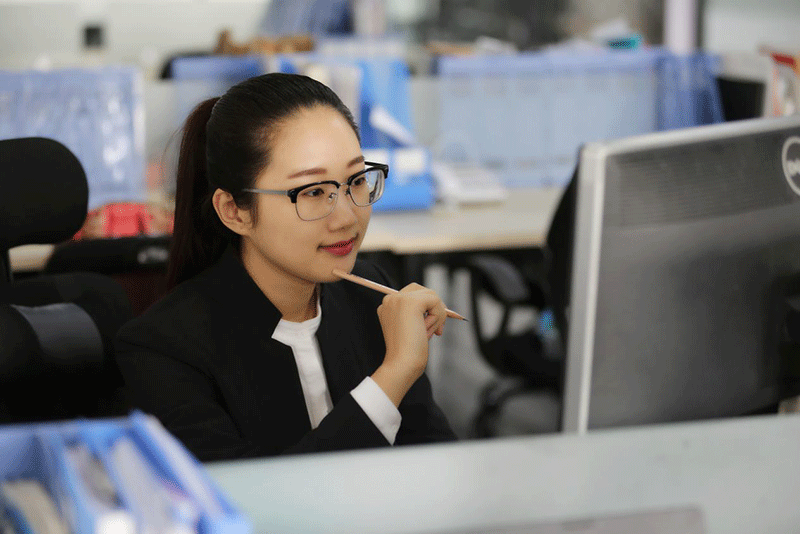 2013年7月15日,大學畢業(yè)的吳瓊?cè)肼毧底税俚拢蔀榱艘幻\營督導(dǎo),奔走在市場一線。2014年3月,吳瓊通過競聘來到人力資源中心,前后從事了招聘專員、招聘組長、見習招聘主管等多個崗位的工作。