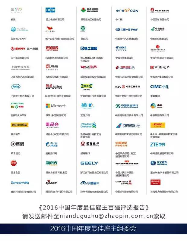 「2016中國(guó)年度最佳雇主百?gòu)?qiáng)榜單」如下:
