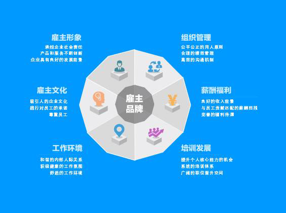 越來(lái)越多的雇主和雇員會(huì)傾向于在共同價(jià)值觀的引導(dǎo)下,為了共同的目標(biāo)和追求聚集在一起??底税俚鹿椭髌放埔苍诓粩噱N煉中逐漸升華,從組織管理、薪酬福利、培訓(xùn)發(fā)展、工作環(huán)境、文化與形象等方面,為求職者和雇員營(yíng)造出一個(gè)充滿活力的雇主品牌形象。