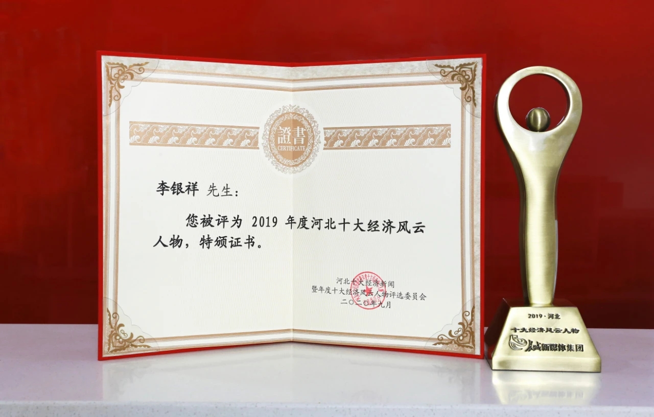 “河北十大經(jīng)濟(jì)風(fēng)云人物”榮譽(yù)證書(shū)和獎(jiǎng)杯