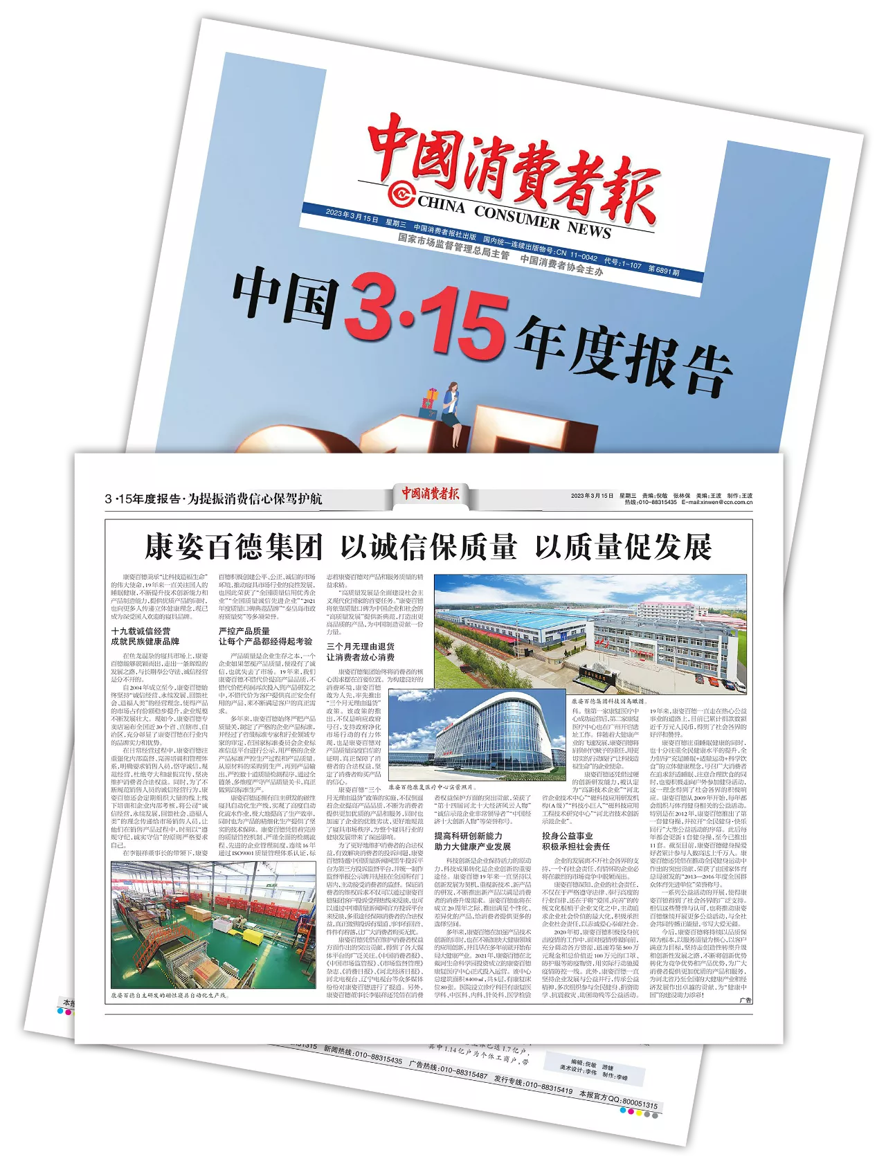 “3·15”國(guó)際消費(fèi)者權(quán)益日,康姿百德以誠(chéng)信經(jīng)營(yíng)、積極維護(hù)消費(fèi)者合法權(quán)益的良好社會(huì)形象,連續(xù)7年榮登《中國(guó)消費(fèi)者報(bào)》。這充分說(shuō)明,康姿百德在誠(chéng)信自律、維護(hù)消費(fèi)者合法權(quán)益等方面的努力和付出,得到了社會(huì)各界的高度肯定和廣泛認(rèn)可。