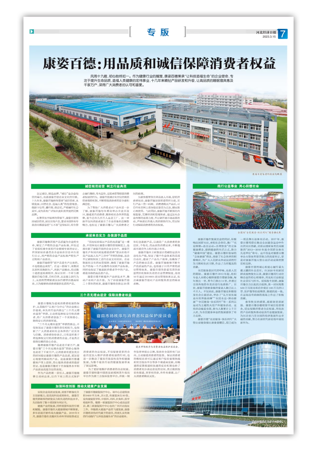 作為河北省優(yōu)秀企業(yè),康姿百德拉動(dòng)了經(jīng)濟(jì)消費(fèi),對(duì)河北省乃至全國(guó)消費(fèi)者權(quán)益保護(hù)起到了積極、深遠(yuǎn)的影響。憑借在誠(chéng)信經(jīng)營(yíng)和消費(fèi)者權(quán)益保護(hù)等方面取得的優(yōu)異成績(jī),康姿百德連續(xù)5年受到了《河北經(jīng)濟(jì)日?qǐng)?bào)》的全面報(bào)道。
