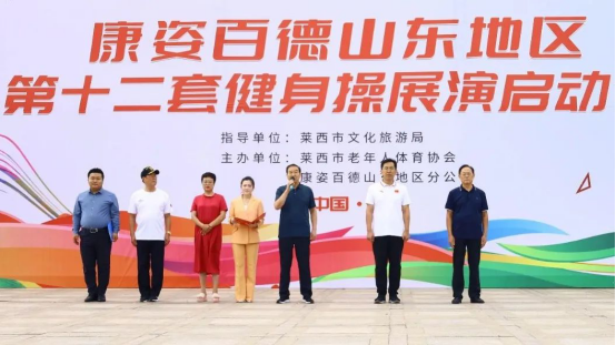 康姿百德銷售公司副總監(jiān) 鄭忠義,萊西市老年人體育協(xié)會(huì)主席 孫永高,萊西市旅游局副局長(zhǎng) 任勤利,萊西市老年人體育協(xié)會(huì)三位副主席 劉云平、矯素萍、隋明新共同出席了本次活動(dòng)。鄭忠義副總監(jiān)發(fā)表了熱情洋溢的講話,隨后,萊西老年人體育協(xié)會(huì)主席孫永高宣布健身操展演開始。