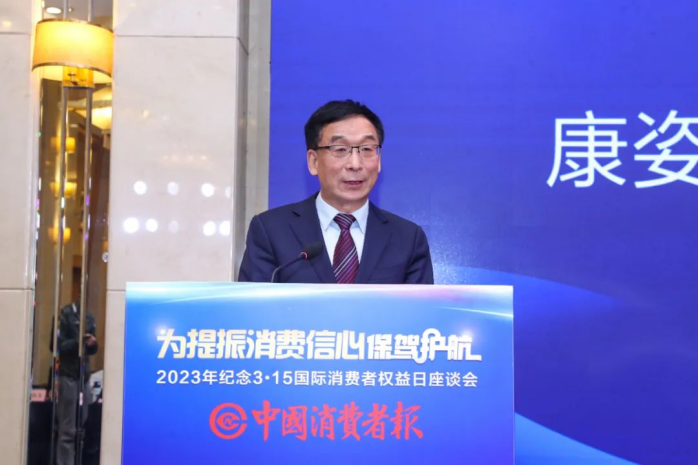3月14日,2023年度“紀念3·15”國際消費者權(quán)益日座談會在京召開。來自國家市場監(jiān)督管理總局相關(guān)司局負責(zé)人、中國消費者協(xié)會領(lǐng)導(dǎo),以及在保護消費者權(quán)益方面貢獻突出的典范企業(yè)等,共同參加本次座談會??底税俚录瘓F董事長李銀祥作為保障消費者權(quán)益的優(yōu)秀企業(yè)代表,受邀出席并作主旨演講。