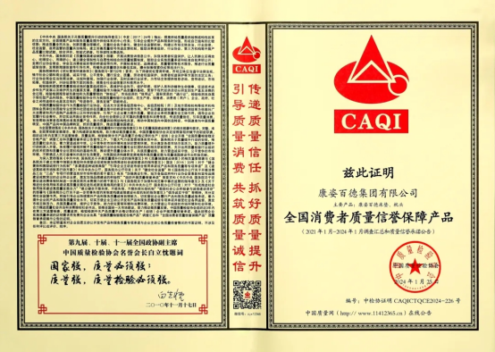 康姿百德集團(tuán)榮獲“全國(guó)消費(fèi)者質(zhì)量信譽(yù)保障產(chǎn)品”、“全國(guó)質(zhì)量檢驗(yàn)穩(wěn)定合格產(chǎn)品”榮譽(yù)稱號(hào)
