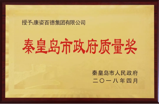 康姿百德在質(zhì)量水平、創(chuàng)新能力、品牌影響力以及效益等方面均取得突出成績(jī)并達(dá)到國(guó)內(nèi)先進(jìn)水平,榮獲秦皇島市政府質(zhì)量獎(jiǎng)(組織獎(jiǎng)),董事長(zhǎng)李銀祥榮獲秦皇島市政府質(zhì)量獎(jiǎng)(個(gè)人獎(jiǎng))。