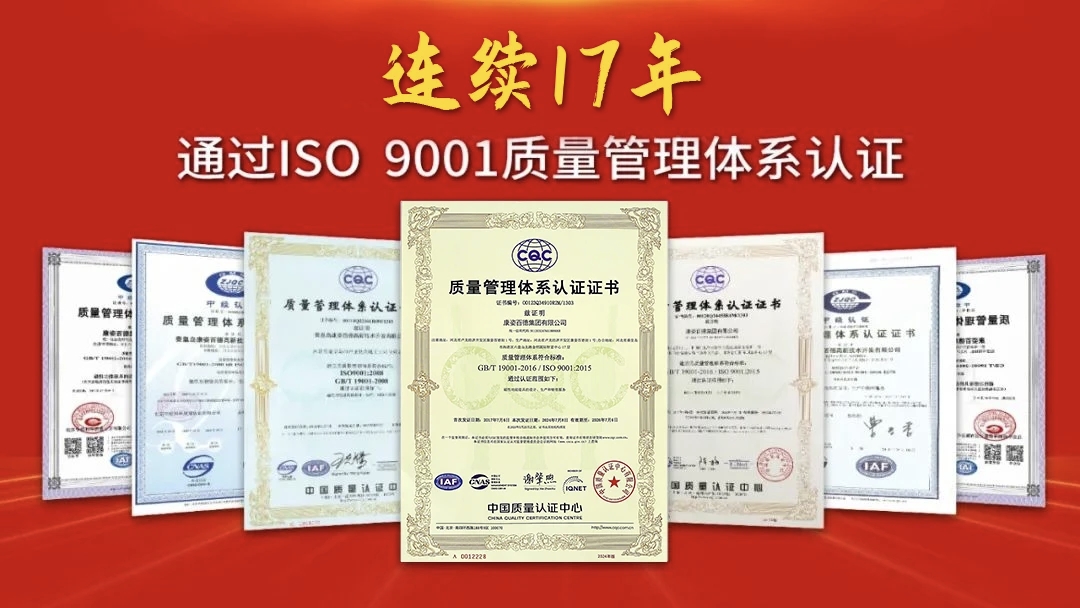 康姿百德始終將產(chǎn)品質(zhì)量視為企業(yè)生命線,嚴(yán)格執(zhí)行高標(biāo)準(zhǔn)的質(zhì)量管理體系。憑借過硬的質(zhì)量管理實(shí)力、完善的質(zhì)量管理體系、高效精細(xì)化的管理模式,康姿百德已連續(xù)17年通過ISO 9001質(zhì)量管理體系的認(rèn)證和延續(xù)認(rèn)證。