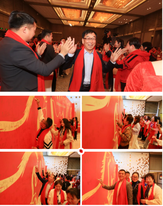 當(dāng)日下午,康姿百德年會在熱烈融洽的氛圍中正式拉開序幕。家人們身著盛裝、意氣風(fēng)發(fā)依次步入會場。李銀祥董事長攜公司高管與每位家人親切握手,并為大家系上象征吉祥與溫暖的紅圍巾。